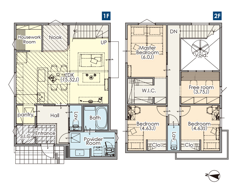 ・2階にフリールーム、1階にヌック有
